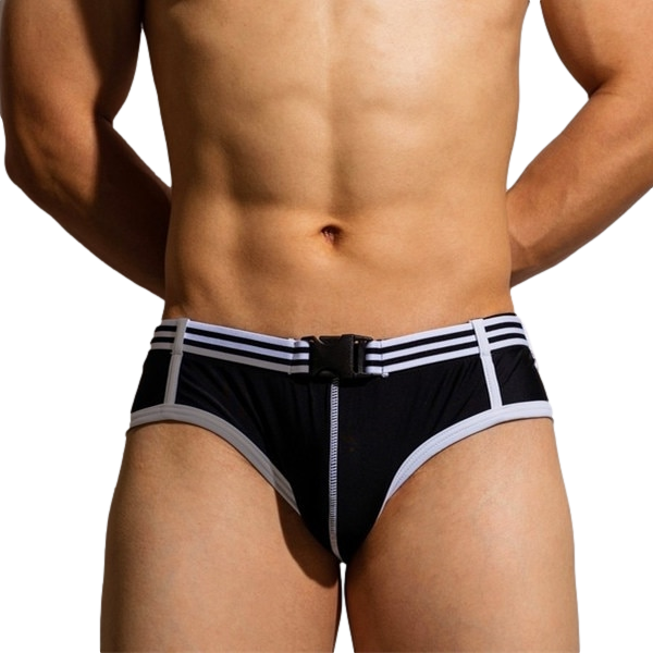 Buckle Up! هذه السراويل القصيرة للسباحة مجهزة بحزام مشبك. مثالية للرجال الذين يستعدون للعمل!
