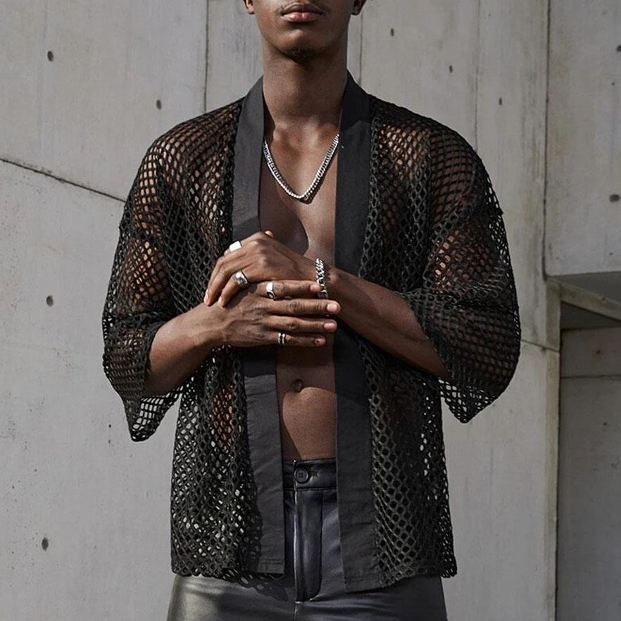See through fishnet o ring hollow out solid top