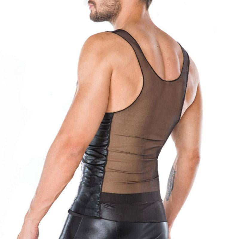 Sleeveless v neck PU leather solid lace up top | men stripper wear | male stripper outfit