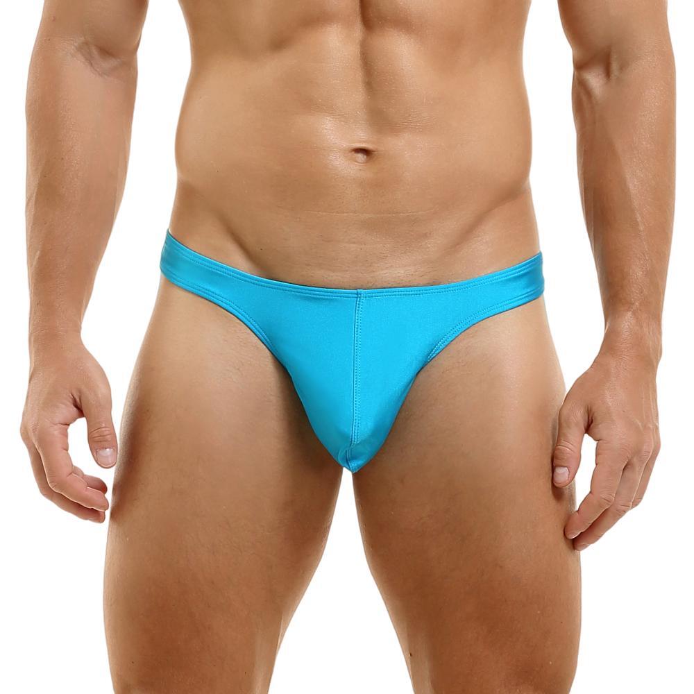 These Pouched Swim Thongs won't hide much! They have a simple and modern cut with a convex pouch and slim rear that will show off your bum and bulge. They are made from a light and flexible nylon blend. and are made to be worn both as swimwear and underwear.  Perfect for guys who love attention at the beach or by the pool.