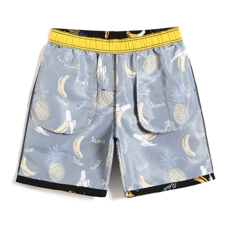 Two fruits are all over these board shorts.? Bananas because. well. you know. And pineapples. well. because you know!?