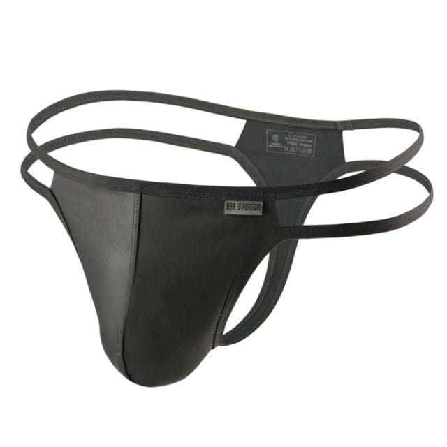 This double string thong has a glossy leather look and is perfect for guys who want a pair that will stand out and bare all! You'll be sure to grab the best attention anywhere you dare to wear this sexy pair.