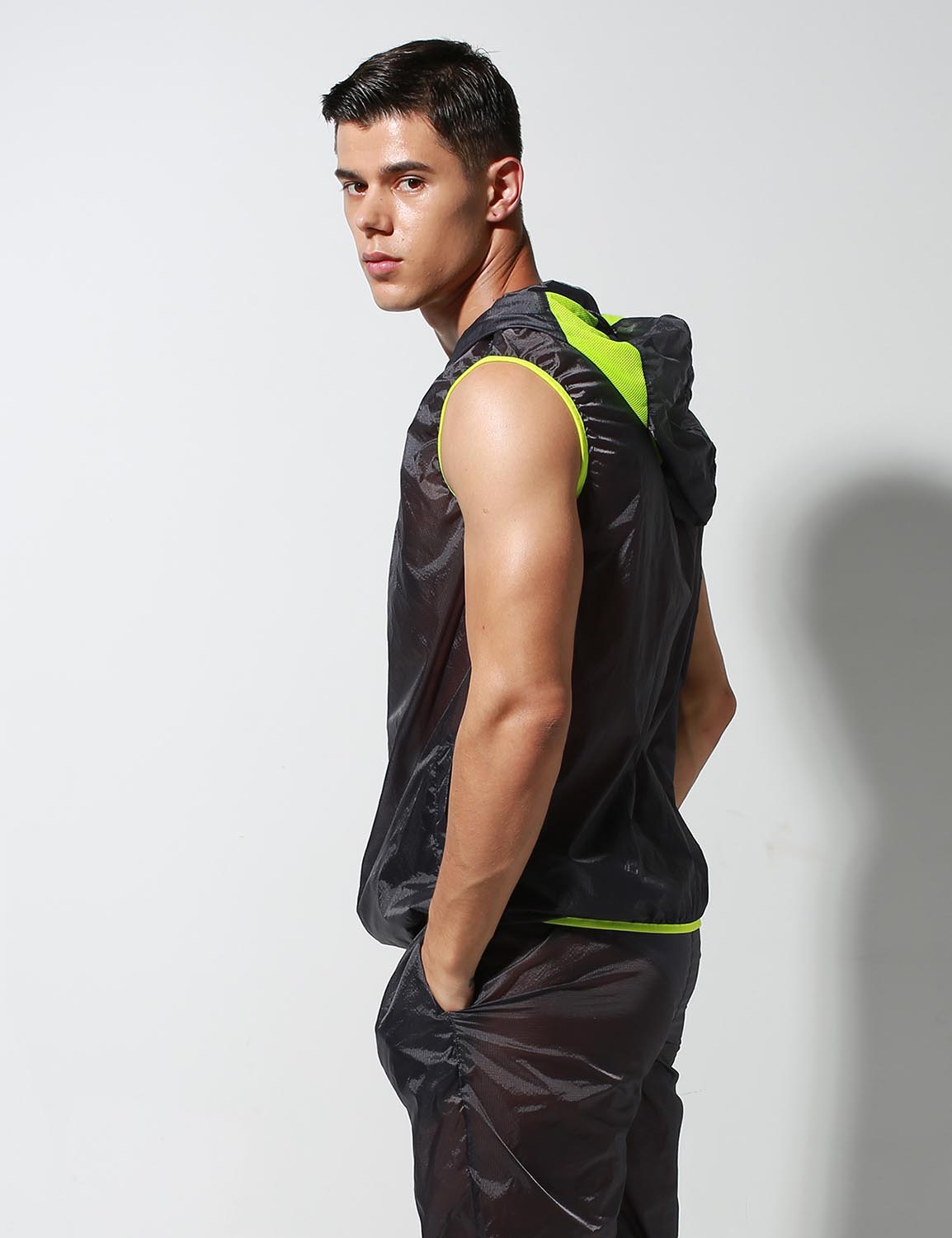 ORLVS UNDERWEAR | Translucent Quick-Dry Sport Sleeveless Hooded Jacket S2901| GAY UNDERWEAR