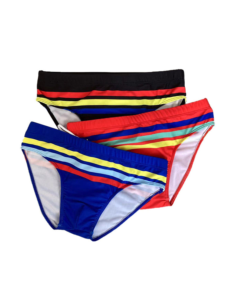Experience perfect freedom with these colorful striped briefs. engineered from 80% high-density polyester + 20% spandex for maximum stretch and recovery. The 4-way stretch technology provides complete mobility. while the bold vertical stripes create a flattering visual effect that enhances your silhouette. Perfect For: Competitive swimming. Water aerobics training. Beach volleyball. Confidence-boosting wear.