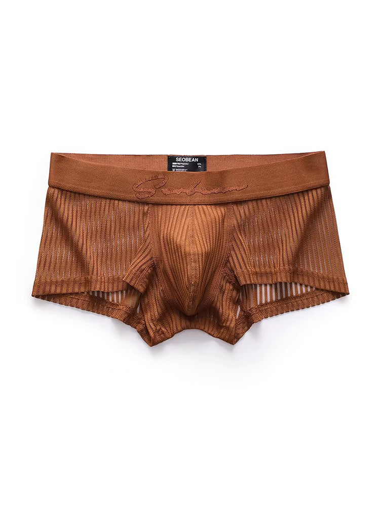 These men's trunks feature a solid stripe mesh design that keeps airflow moving for a cool. breathable feel. The soft mesh fabric sits comfortably on the skin. while the well-shaped pouch offers gentle support without pressure. Lightweight and easy to wear. they're ideal for everyday comfort with a clean. modern look.