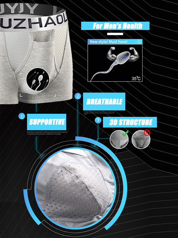 Patented Separate Pouch Tech: Men's underwear with unique dual pouch keeps intimate areas comfortably separated and stays cool.