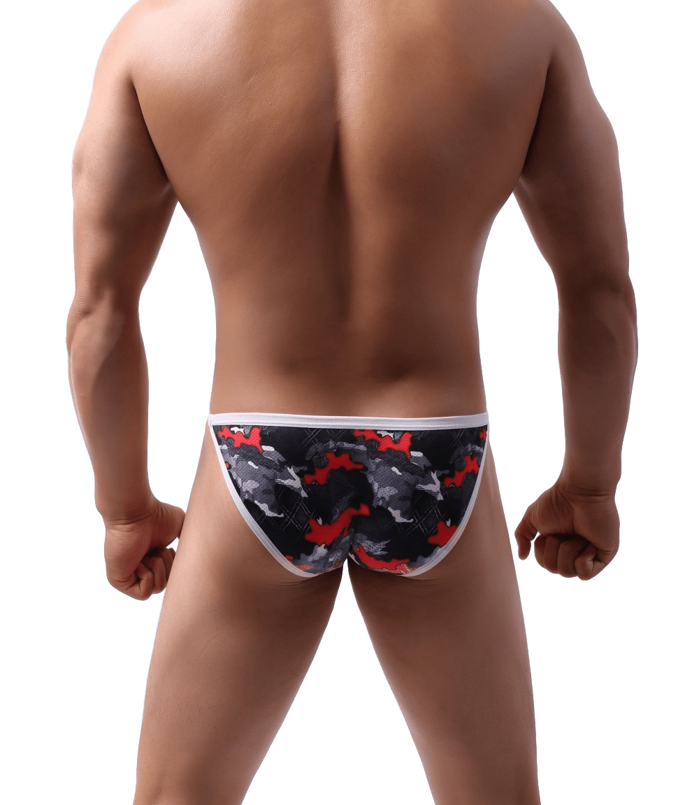 This sexy string bikini with a convex bulge pouch won't hide much. Showoff your body as you rock this fun and exciting pair. Printed with a variety vibrant graphic designs.