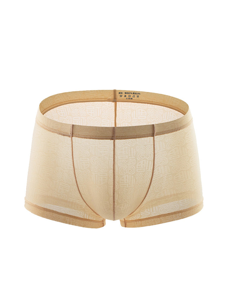 These trunks feature a stylish jacquard design. embodying contemporary fashion trends. Crafted from nylon fabric. it ensures a healthy and breathable experience. offering a skin-like tactile sensation. The innovative ice-cool seamless technology. allows for optimal sweat absorption and heat dissipation. creating a refreshing coolness. This advanced design maintains your skin in a state of ultimate comfort throughout the day.