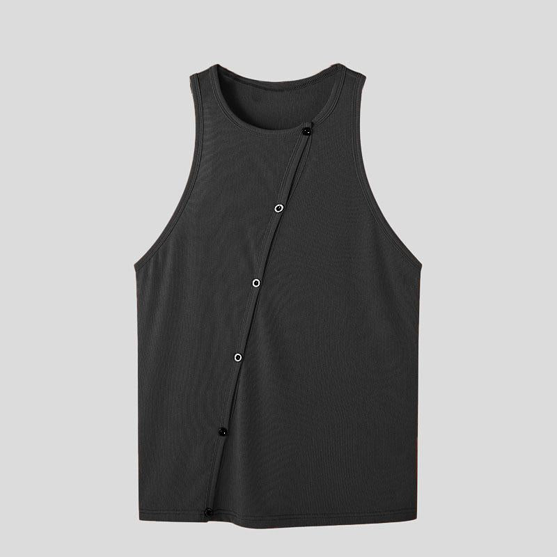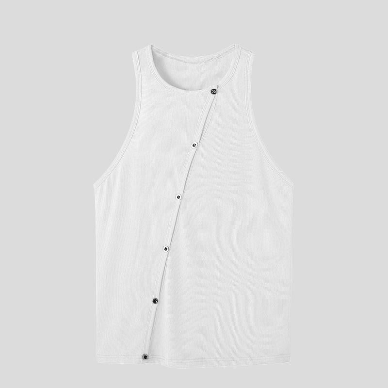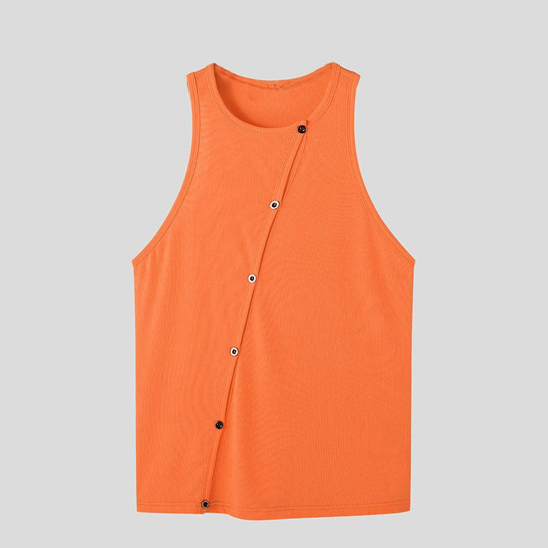 Crewneck sleeveless hollow out bustier button solid top