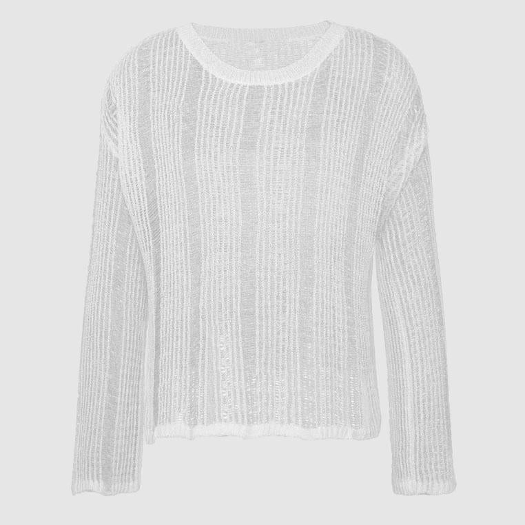 Long sleeve hollow out crewneck crochet solid top