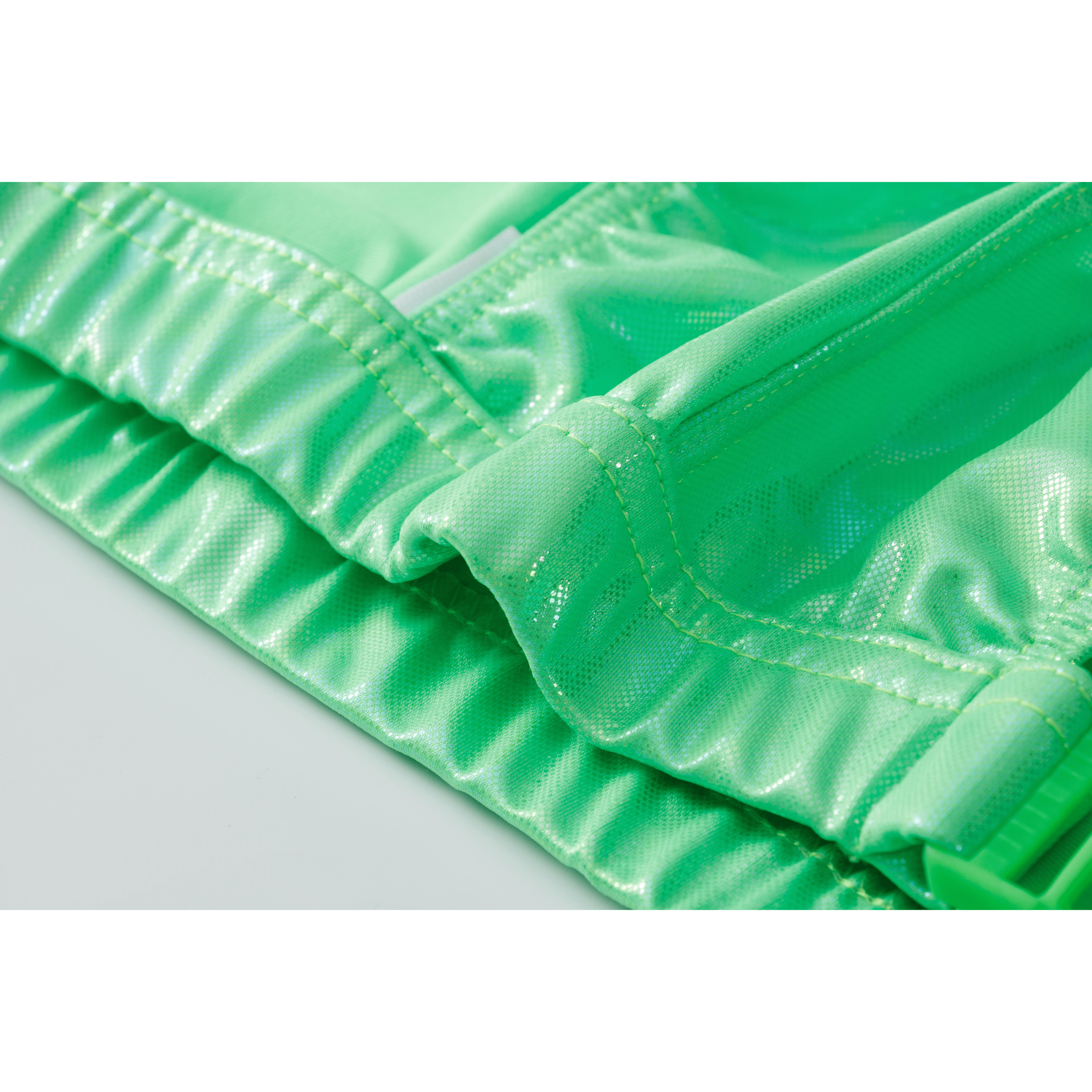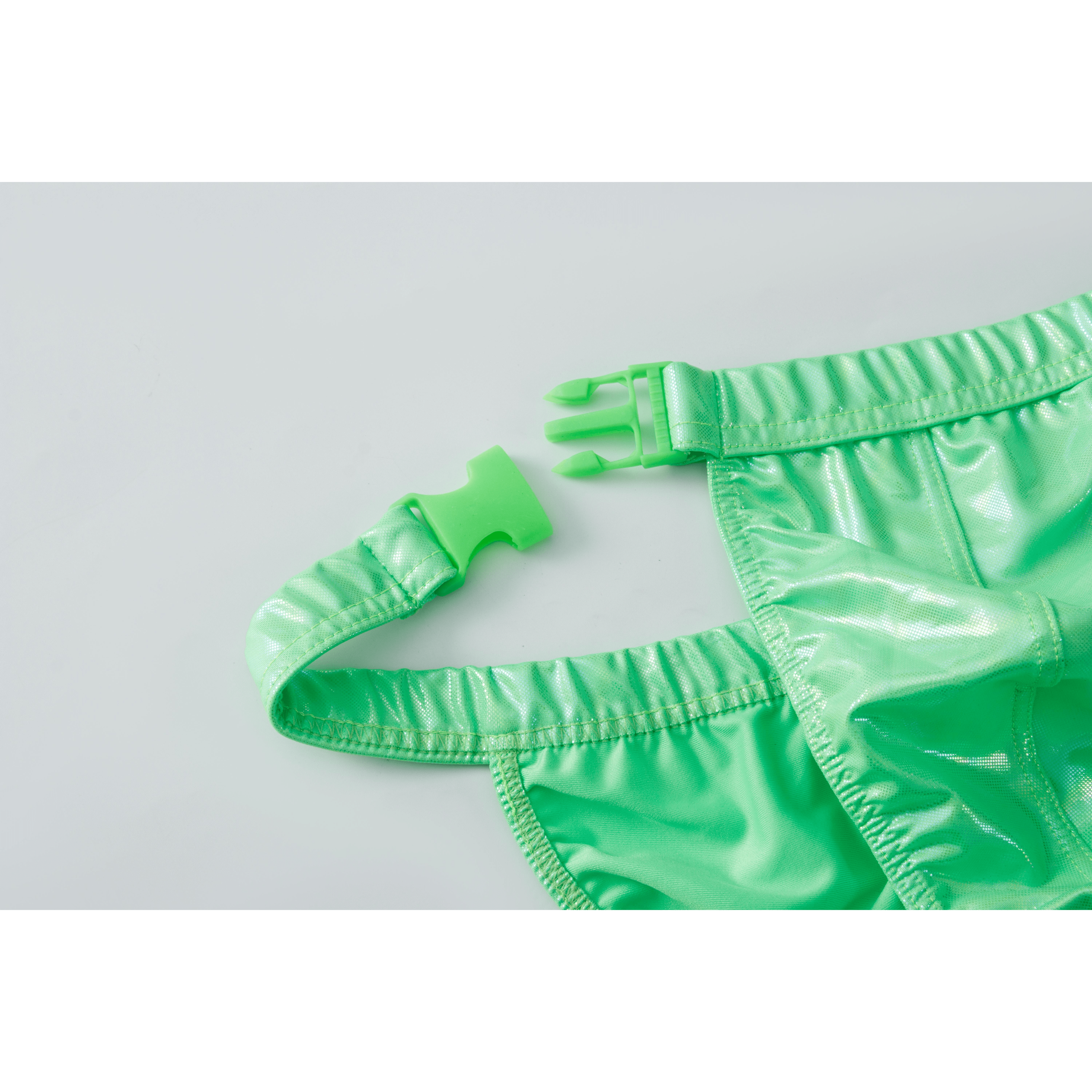 Featuring two detachable buckle straps around the waistband will give you added look of appearance and style with an iridescent coat on the outer layer of fabric.