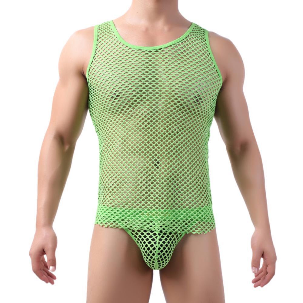 Get ready for some after-hours fun with these fishnet tank tops. Their sexy design won't cover much and is perfect for guys who want to show off their body.