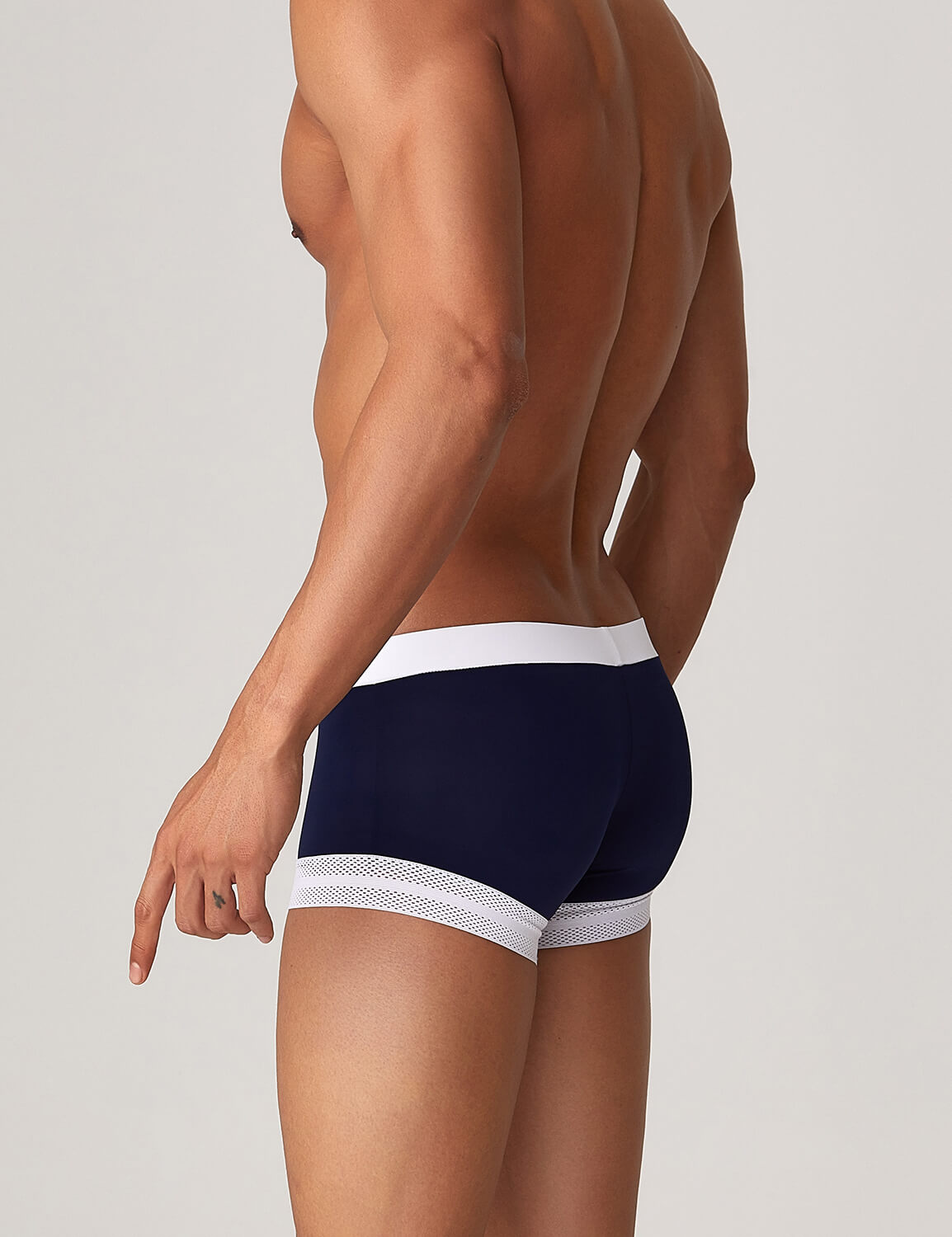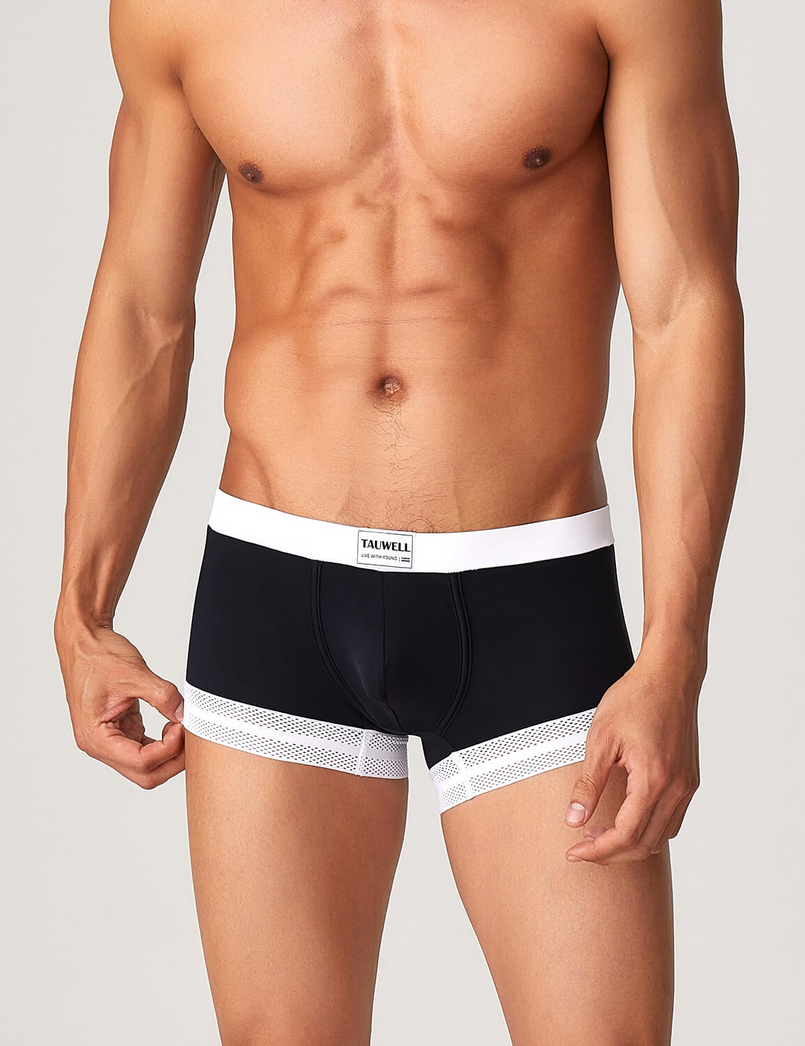 It uses Nylon stretch mesh fabric for the leg hole