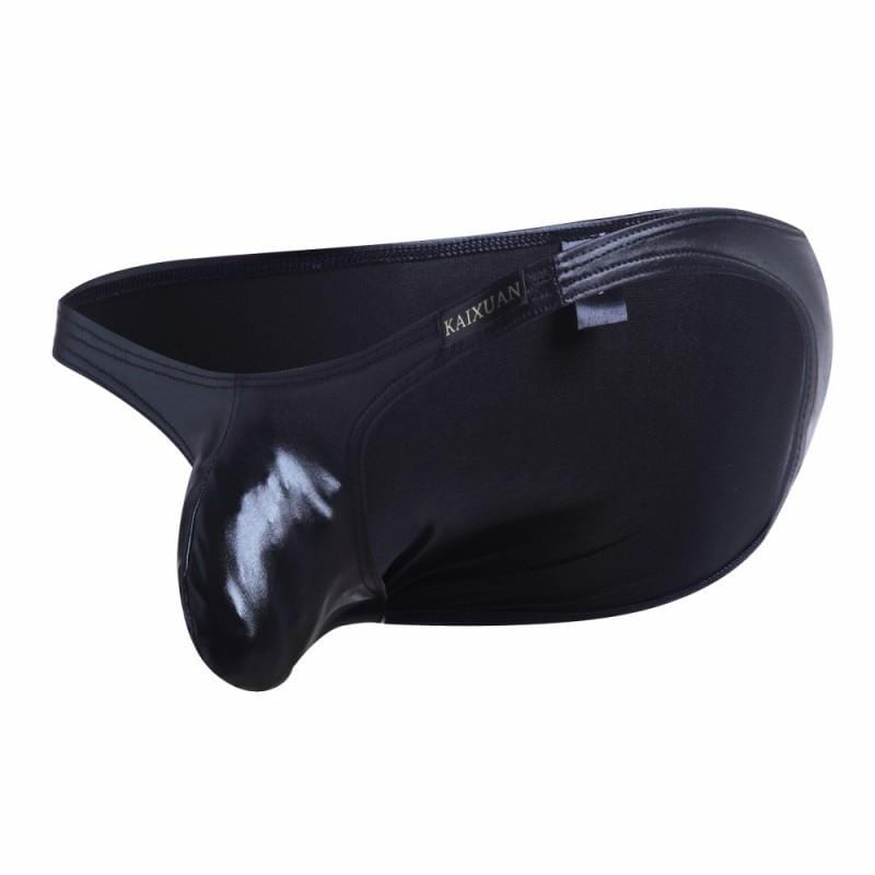 These sexy bikini briefs have a glossy faux leather look and a fitted convex pouch to help showcase your bulge. Perfect for the party-boys who want to show a little more while wearing their undies. Available in a variety of vibrant colors.