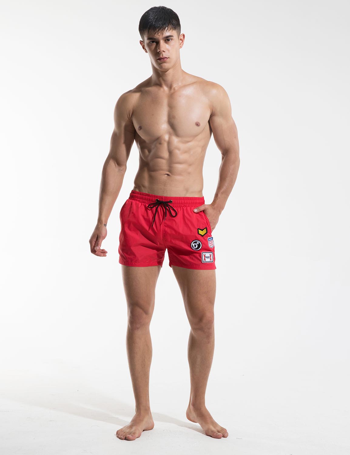 ORLVS UNDERWEAR | Quick-Dry Sport Swim Beach Surf Badge Shorts S609| GAY UNDERWEAR