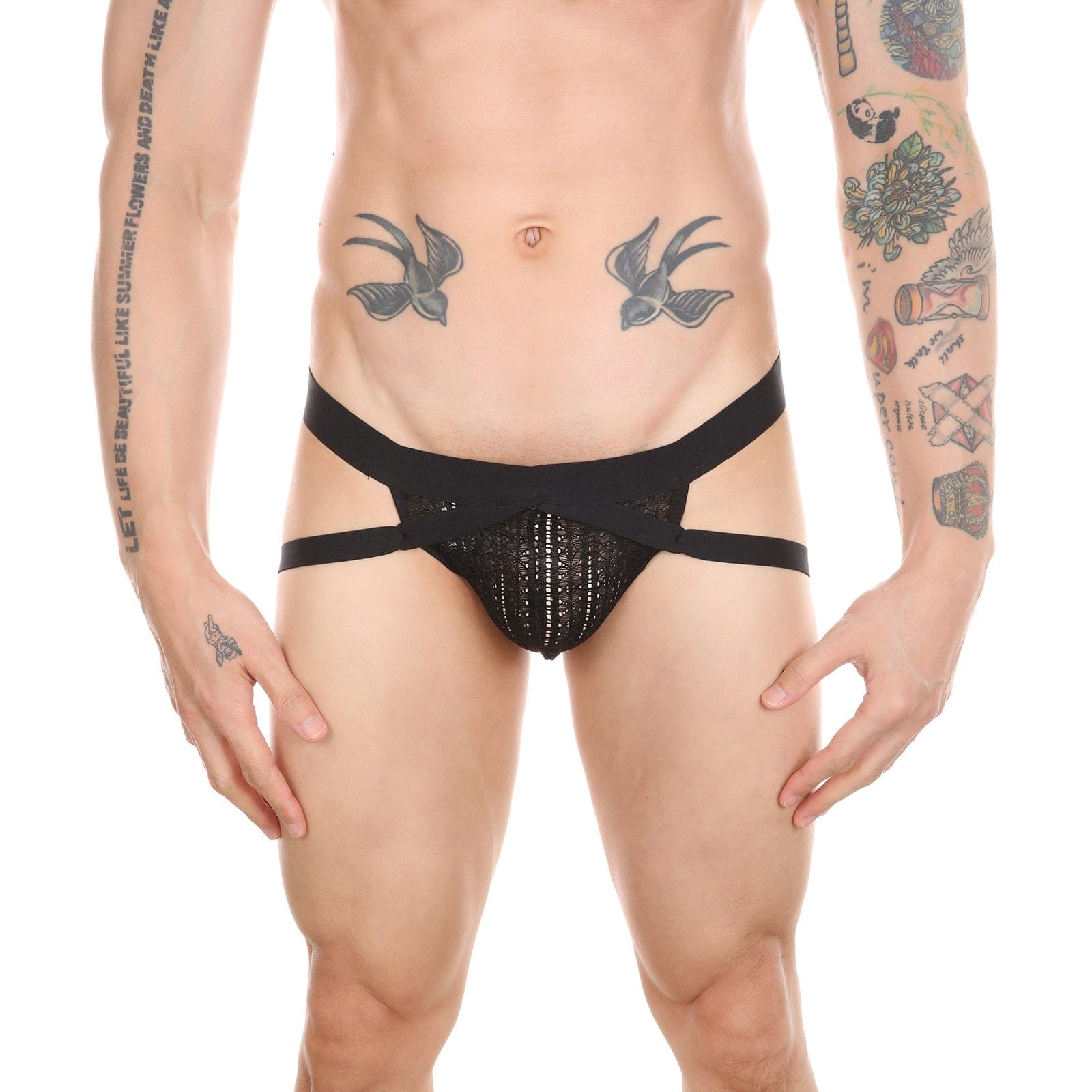 Turn heads in this sexy lace jockstrap that won't hide much. It's intricate lace design and supportive rear straps make this pair a unique addition to anyone's collection.