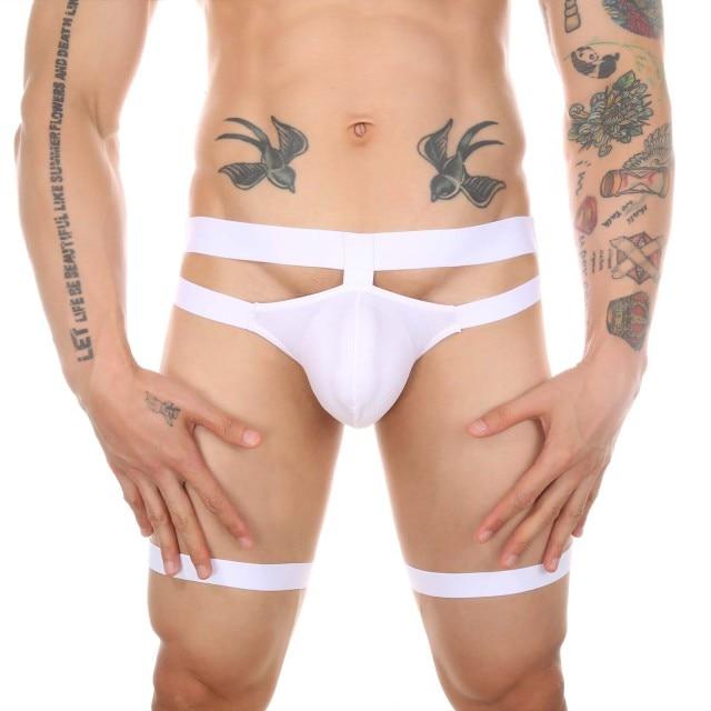 This strapped up garter thong is unlike any other pair of undies! They are ultra soft with a convex pouch to hold and enhance your package. Thigh garters strapped to the double banded waist really make this pair stand out and are sure to attract only the best attention. Perfect for guys who don't want to settle for a bland and boring pair of underwear!